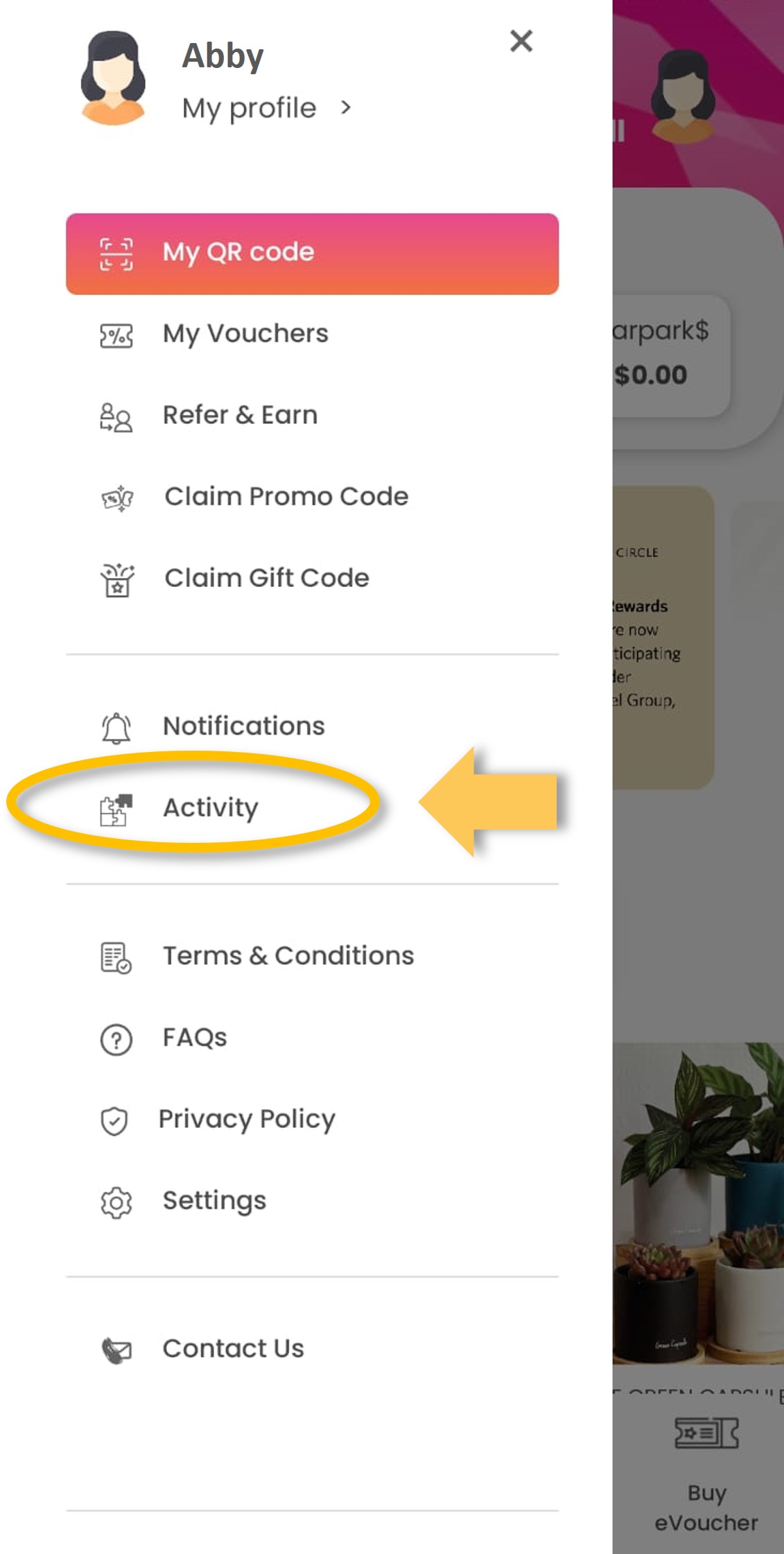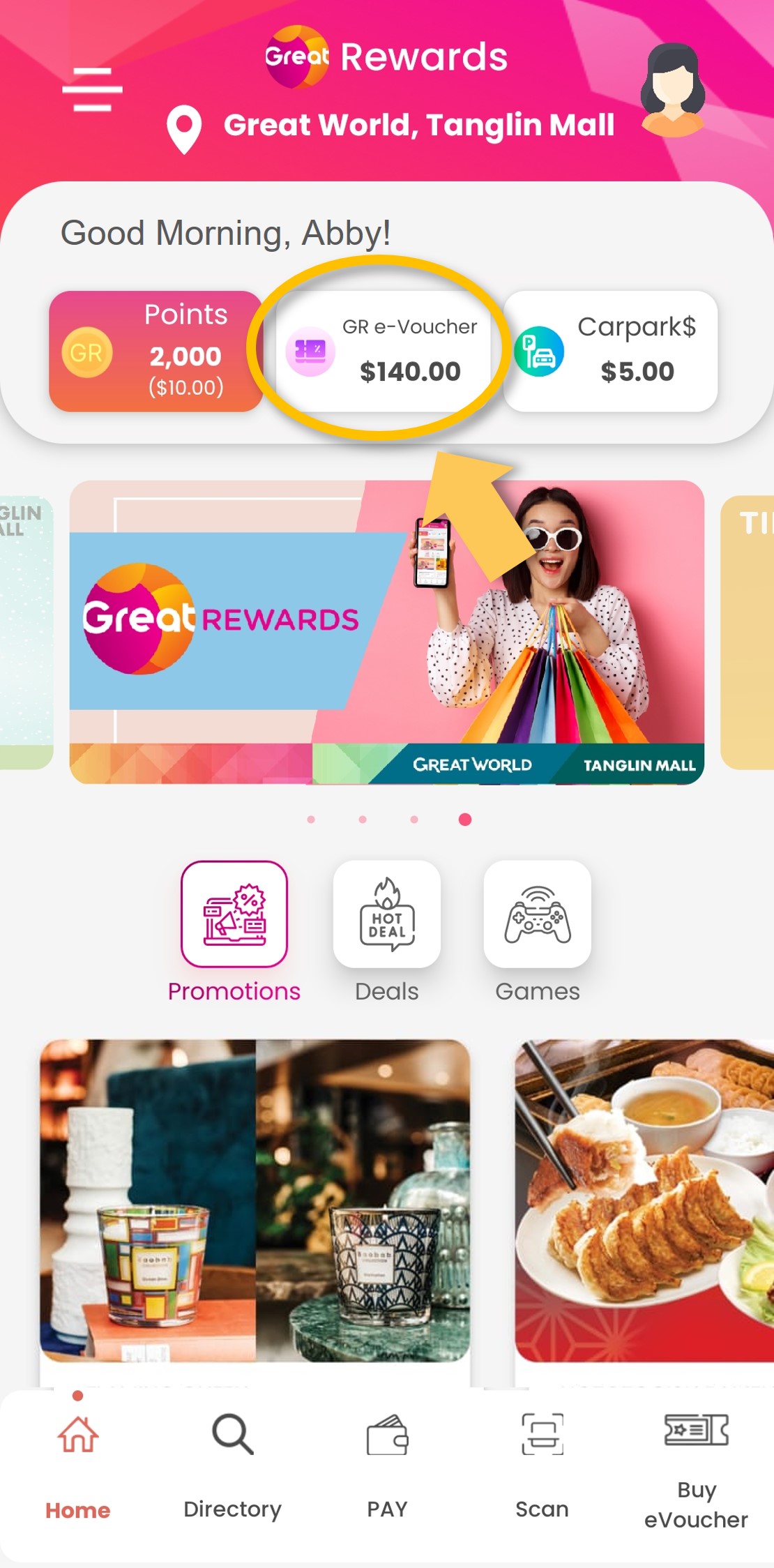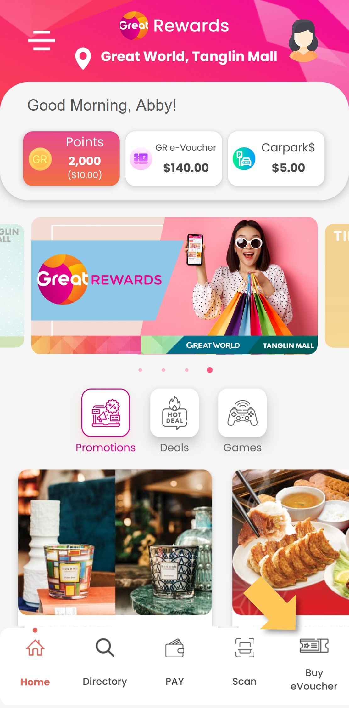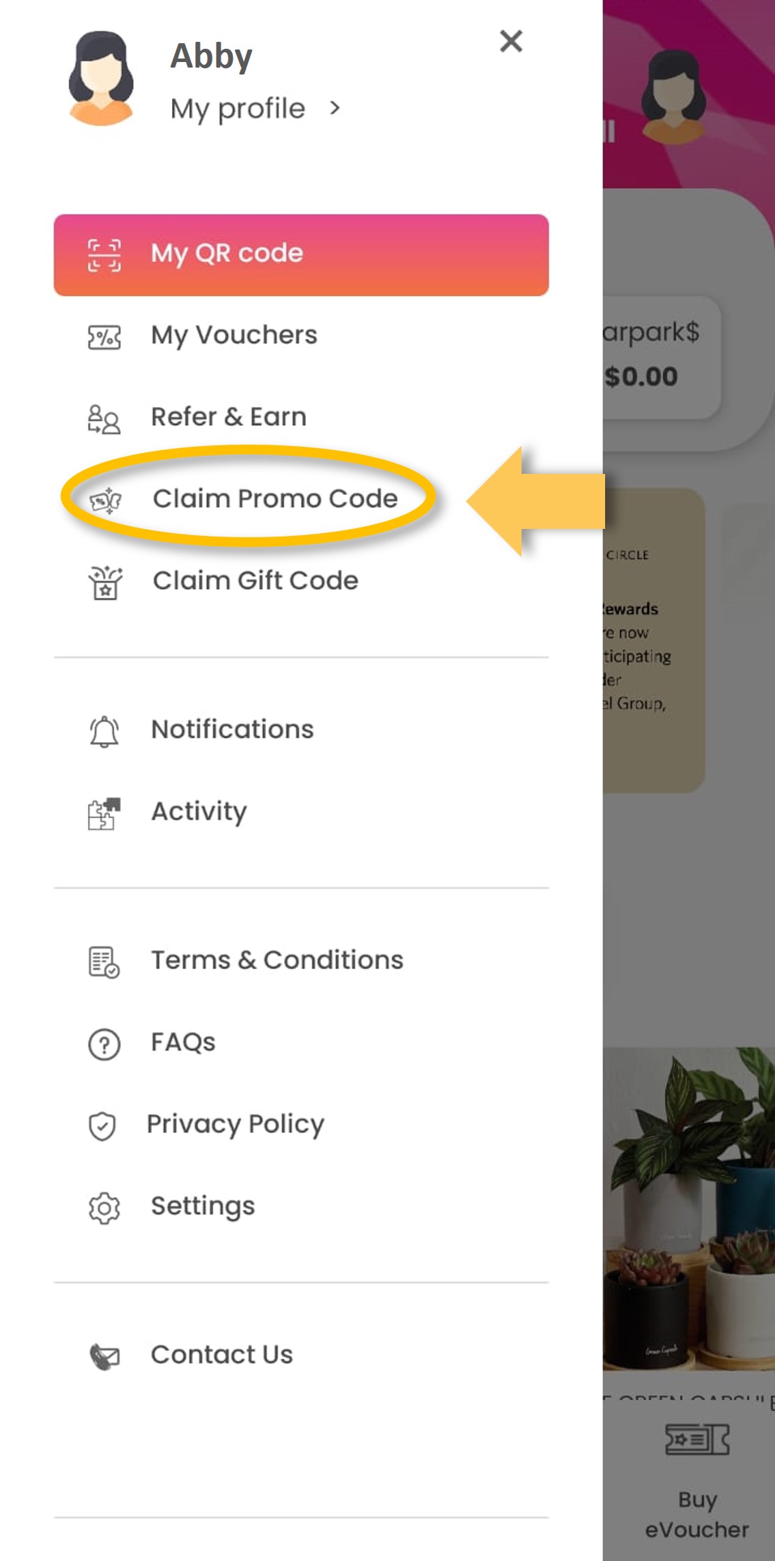 | Step 1: Tap on ‘Buy eVoucher’.