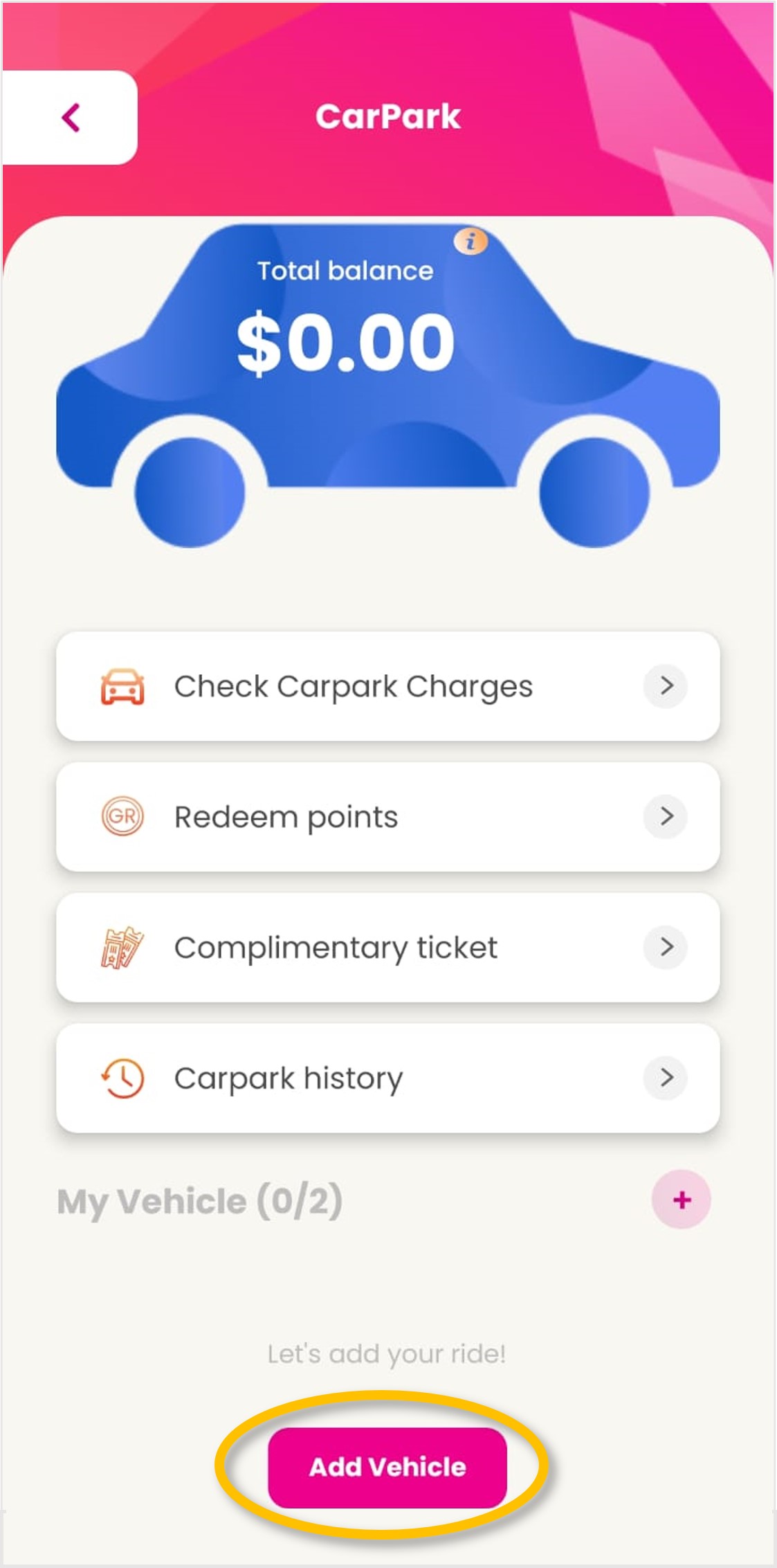 | Step 2: Tap on ‘Add Vehicle’.
