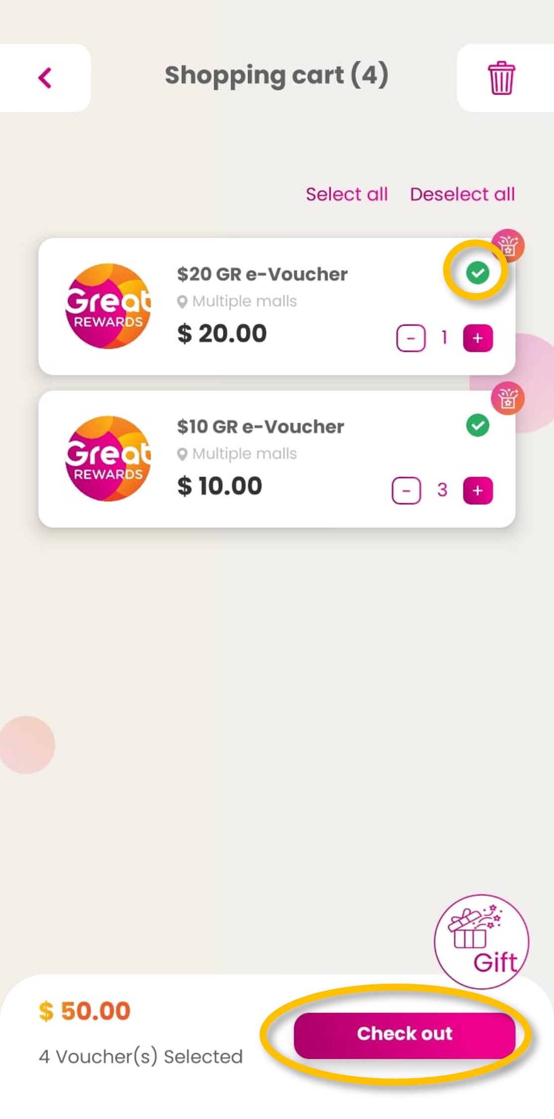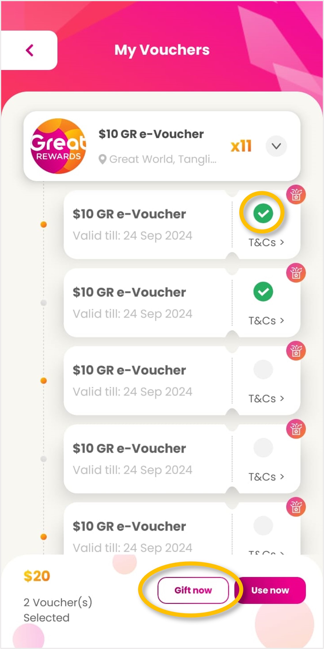 | Step 2: Select e-Voucher to gift and click on ‘Gift now’.