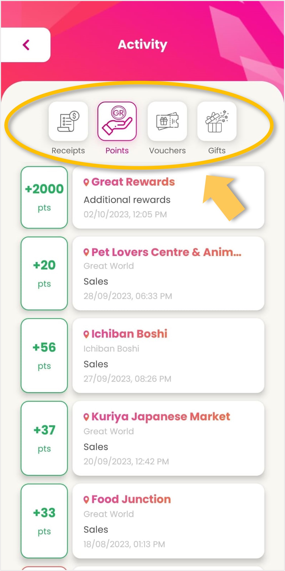 | Step 1: Tap on ‘Points’.