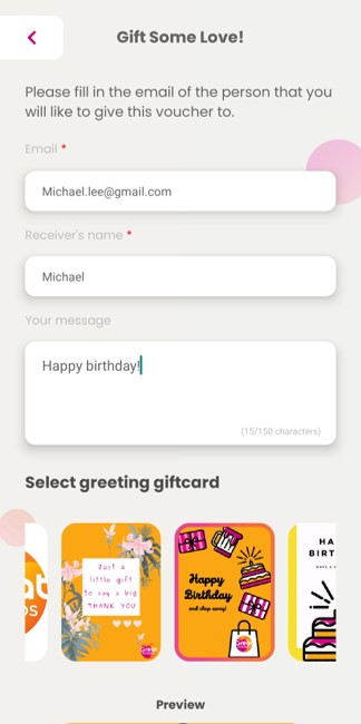 | Step 4: Input receiver’s details and select giftcard image and click ‘Send Now’.