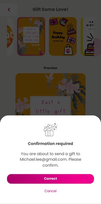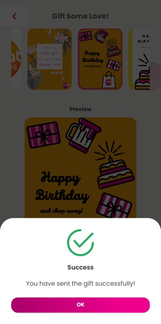 | Step 6: Gift is successfully sent to the receiver.